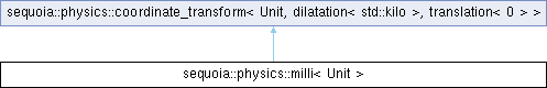 Inheritance diagram for sequoia::physics::milli< Unit >: